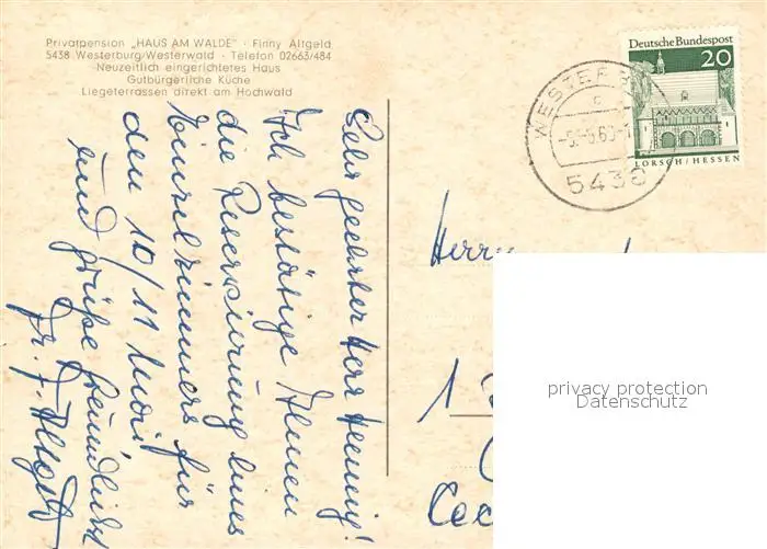 Westerburg_Westerwald Privatpension Haus am Walde Westerburg_Westerwald postalisch gelaufen 1963 Erhaltung siehe scans [KathaD81] Kathoren