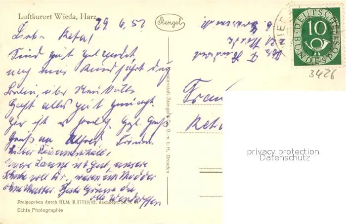 Wieda Fliegeraufnahme Wieda postalisch gelaufen 1952 Erhaltung siehe scans [KathaD81] Kathoren