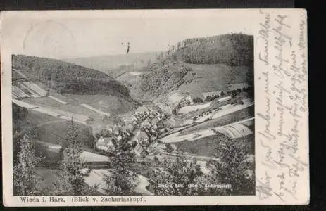 Wieda im Harz. Blick v. Zachariaskopf - Gelaufen. 1904.. (NPLZ 37447) Posiadamy rowniez konto zlotowkowe w Polsce.