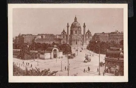 Wien IV. Karlsplalz mit Karlskirche - Nicht gelaufen. (Österreich PLZ 1000)