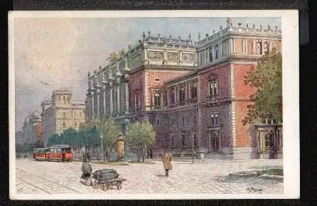 Wien. Schottenring mit Börse - Briefmarke abgerissen.Wiener Künstler Postkarten. B.K. W 1. Serie 854/2.(Österreich PLZ 1000)