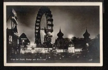 Wien bei Nacht. Prater mit Riesenrad. - Nicht gelaufen. Postkartenverlag "Donauland" Wien III/40.(Österreich PLZ 1000)