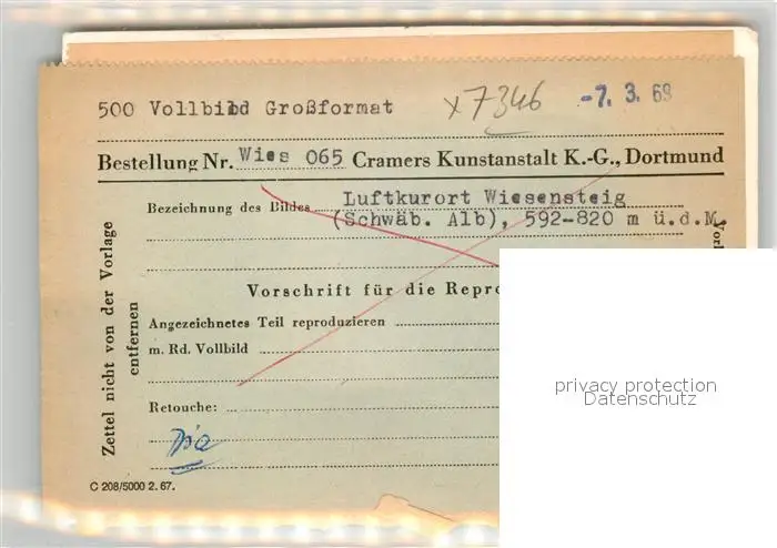 Wiesensteig Wiesensteig postalisch nicht gelaufen 1969 Verlagsrohabzug (keine Postkartenrueckseite) Erhaltung siehe scans [PaolaD17] Verlagsrohabzug (keine Postkartenrueckseite) PaolPID1