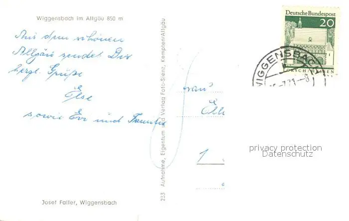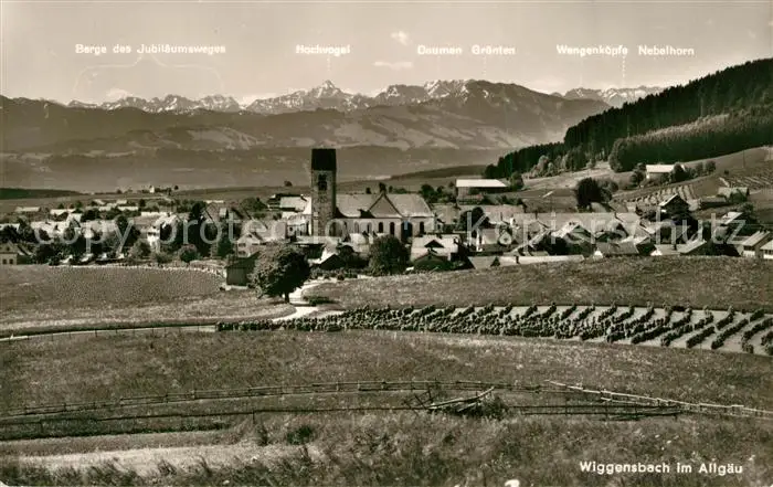 Wiggensbach Panorama Hochvogel Daumen Gruenten Wangenkoepfe Nebelhorn Wiggensbach postalisch gelaufen 1971 Erhaltung siehe scans [WerneD78] WernPID7