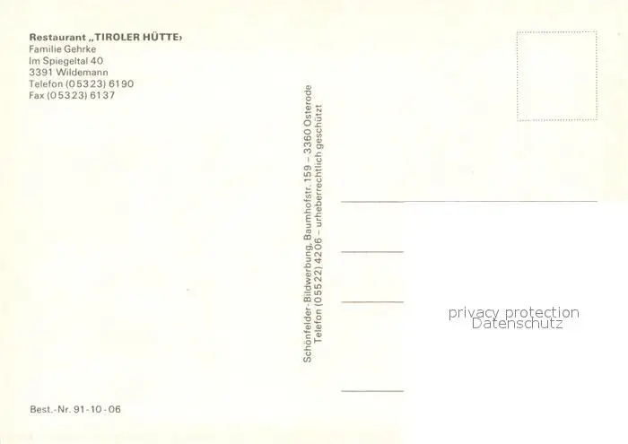 Wildemann Restaurant Tiroler Huette Gastraeume Bar Wildemann postalisch nicht gelaufen nach 1965 Erhaltung siehe scans [WerneD78] WernPID7