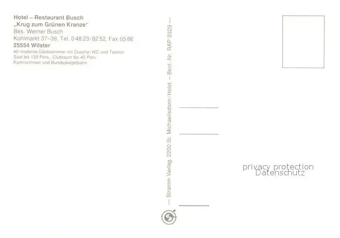 Wilster Hotel Restaurant Busch Krug zum gruenen Kranze Bar Kegelbahn Wilster postalisch nicht gelaufen nach 1965 Erhaltung siehe scans [FriedD77] Frierer