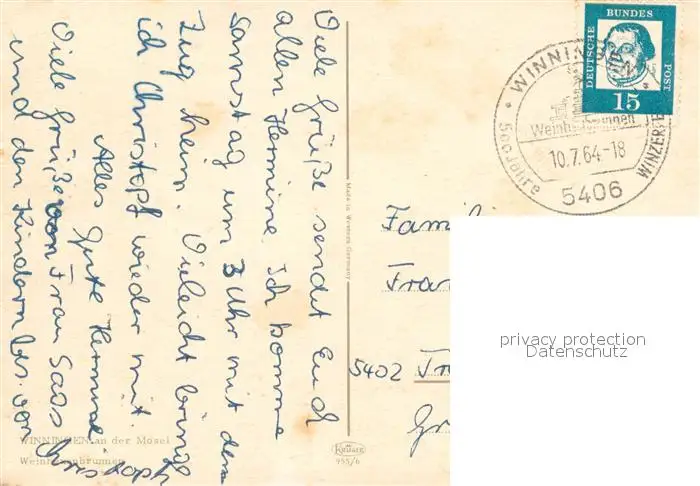 Winningen_Mosel Weinhexenbrunnen Altstadt Fachwerkhaeuser Winningen Mosel postalisch gelaufen 1964 Erhaltung siehe scans [FriedD77] Frierer