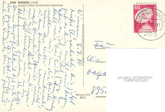 Winsen_Luhe Johann Peter Eckermann Denkmal Winsen Luhe postalisch gelaufen 1980 Erhaltung siehe scans [WerneD78] WernPID7