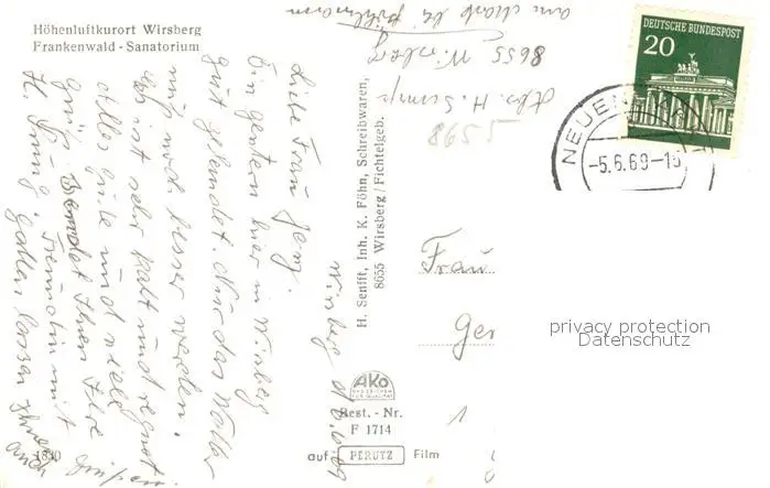 Wirsberg Frankenwald Sanatorium Wirsberg postalisch gelaufen 1969 Erhaltung siehe scans [WerneD78] WernPID7