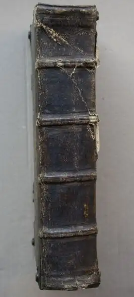 Accueil, 1 Bl., 98 (v.99) BL. et 12 BI. ainsi que 6. Bil. Register, 541 pages, 2 Bll.. Tampons originaux en cuir décoré sur quatre bandes (de 8) et deux ferrures (ici manquantes). Cintre dans la zone des deux branches supérieures et des capitaux. Titre et les 3 premières feuilles suivantes en vrac avec des clous de bordure. L'intention et la première feuille du registre manquent.Page en papier bronzé avec de plus petites coupures occasionnelles (sans perte de texte) ainsi qu'une petite note de la main ancienne. Quelques erreurs dans le pacification imprimée (456 au lieu de 457, 442 au contraire 443, 517 au nom de 520 au titre de 521). - L 'authenticité est bien restaurée.