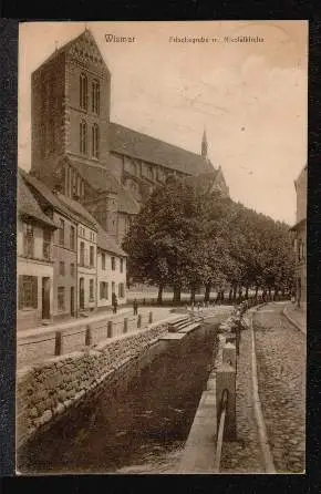 Wismar. Frischegrube m. Nikolaikirche - Gelaufen 1913. (NPLZ 23900)