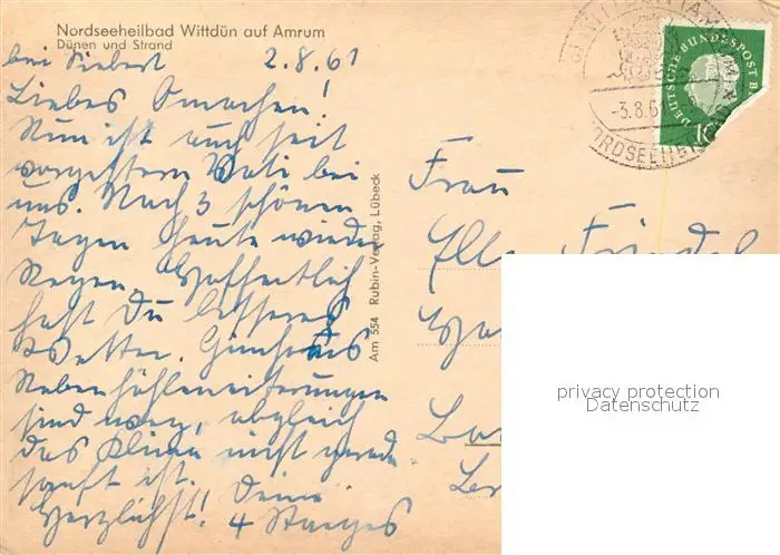 Wittduen_Amrum Duenen und Strand Wittduen Amrum postalisch gelaufen 1961 Erhaltung siehe scans [WerneD78] WernPID7