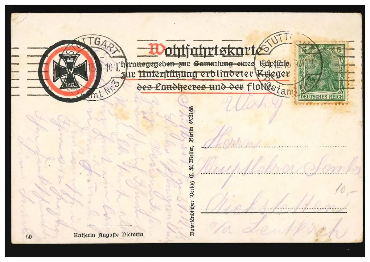 Carte de l'impératrice Auguste Victoria, STUTTGART 31.12.1915