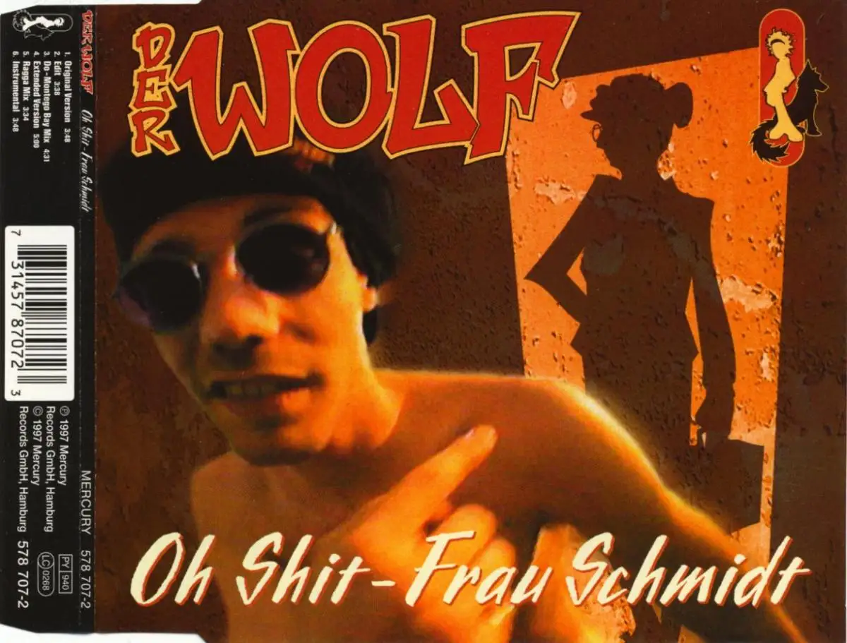 CD Single Der Wolf - Oh Sh*t, Mme Schmidt - État CD M- Hülle M; Fabriqué en Allemagne 1997 Mercury 578 707-2, Tracks [Original Verset] 3:49, [Edit] 3-38, [Do-Montego Bay Mix] 4:31, (Ext. Vers.) 5:00, _Ragga Mix ] 4:34,[Instr. 3:48