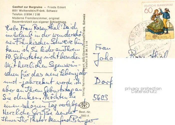 Wolkenstein_Ebermannstadt Gasthof zur Burgruine Landschaftspanorama Felsen Fraenkische Schweiz Wolkenstein_Ebermannstadt postalisch gelaufen 1983 Erhaltung siehe scans [FriedD77] Frierer