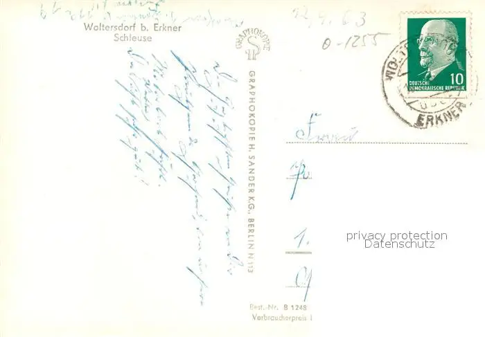 Woltersdorf_Erkner Schleuse Woltersdorf Erkner postalisch gelaufen 1963 Erhaltung siehe scans [KathaD81] Kathoren