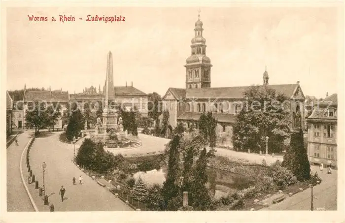 Worms_Rhein Ludwigsplatz Denkmal Kirche Worms Rhein postalisch nicht gelaufen bis 1920 Erhaltung siehe scans [FriedD77] Frierer