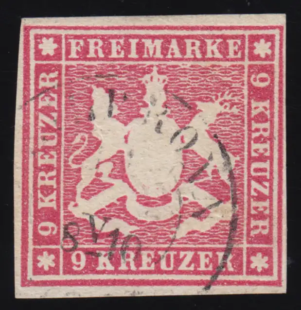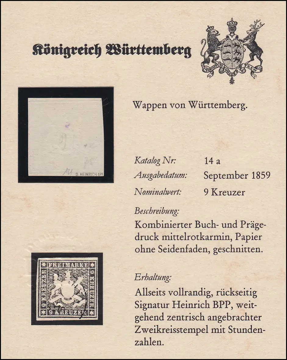 Württemberg 14a Wappen 9 Kreuzer, cacheté HEILBRONN, examiné Heinrich BPP