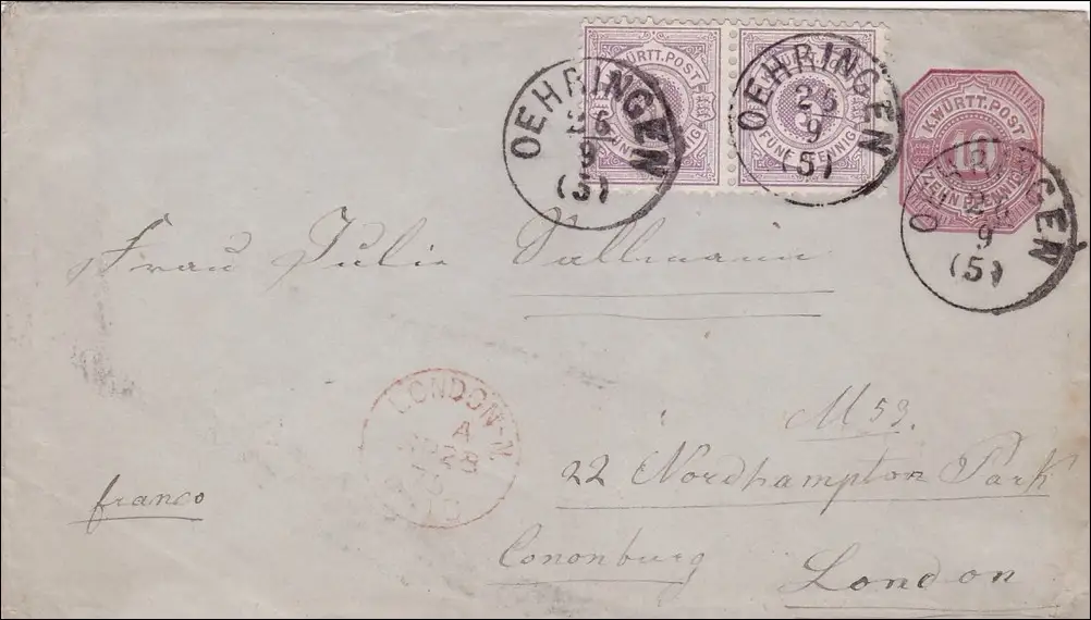 Württemberg: Envoi de marchandises entières d'Öhringen à Londres