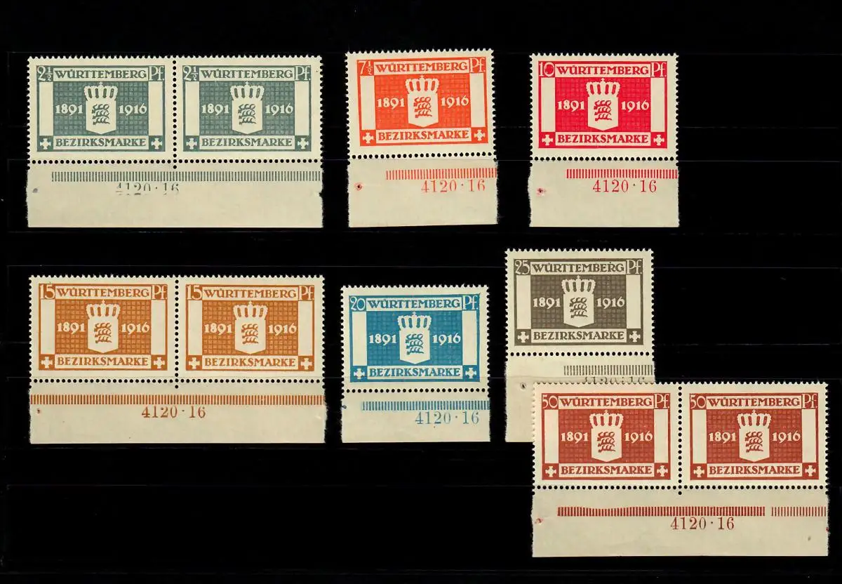 Wurtemberg: Min. 123-129, frais de port, **, complet avec numéro HAN