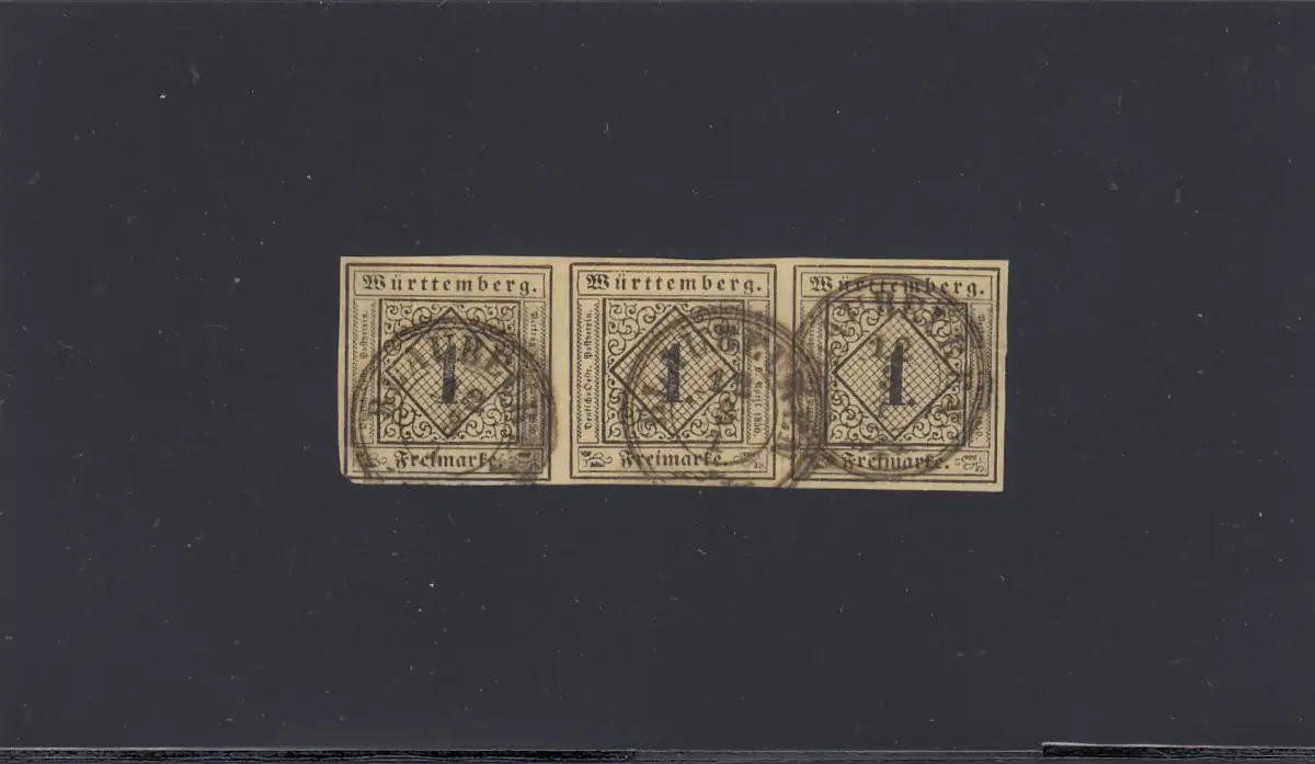 Wurtemberg: numéro 1c, bande horizontale de 3 bandes, petites défauts, BPP vérifié