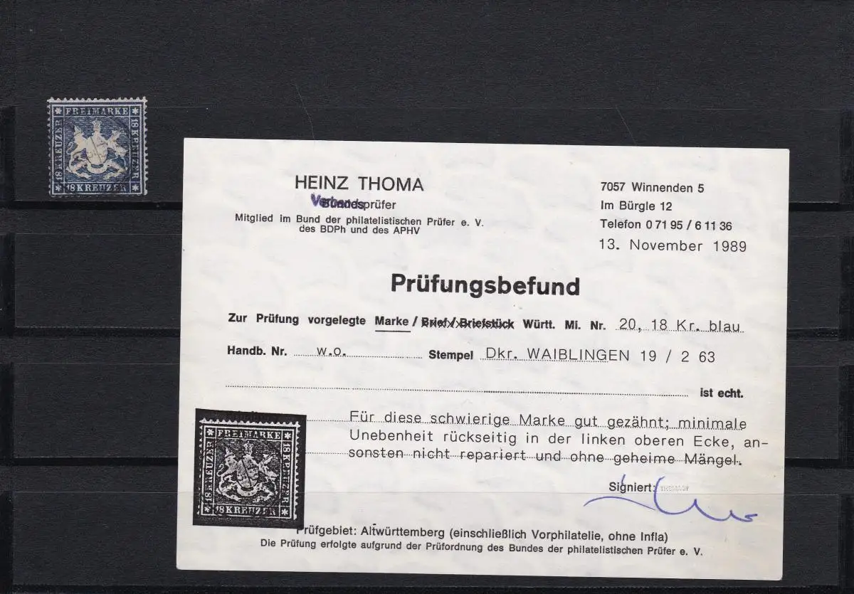 Wurtemberg: numéro 20, cacheté Waiblingen, BPP résultat