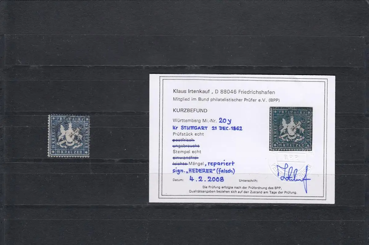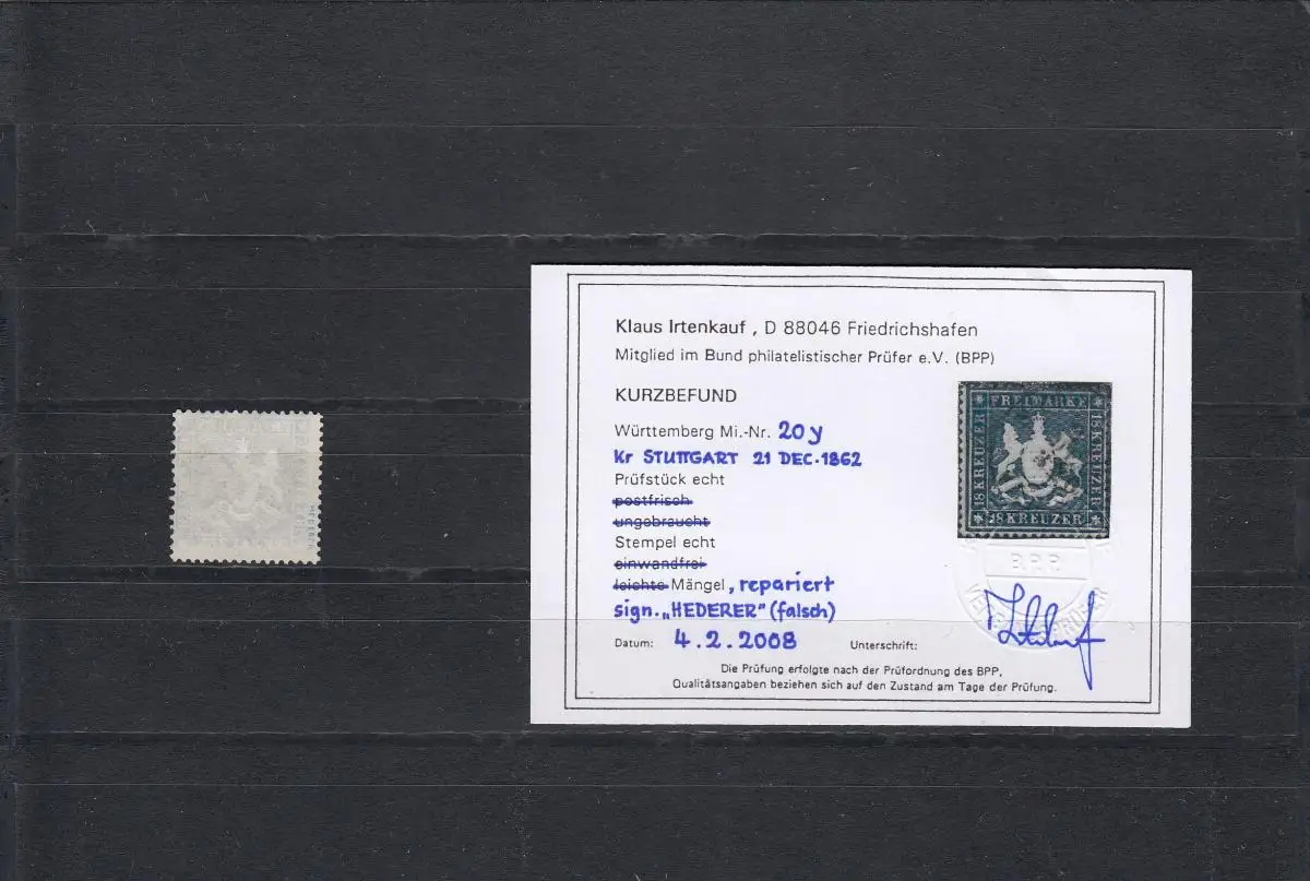 Wurtemberg: Min° 20y, cacheté Stuttgart, BPP résultat
