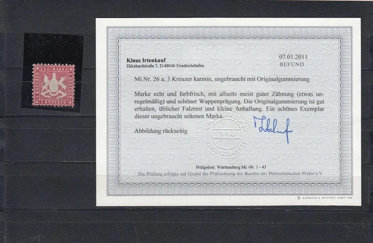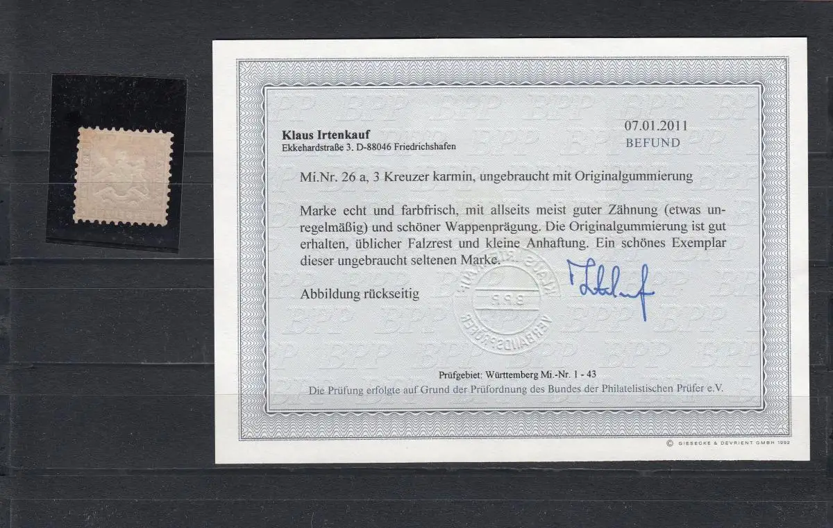 Wurtemberg: Min° 26a, caoutchouc original, rainure, BPP résultat