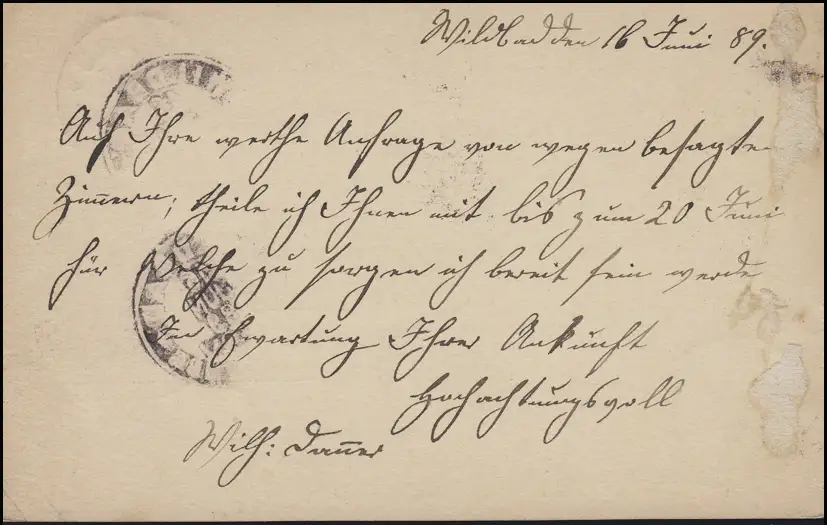 WURTZ P 30, paragraphe 5, p. WILDBAD in WÜRTTMBG 16.6.89 vers HEIDELBERG 16/06