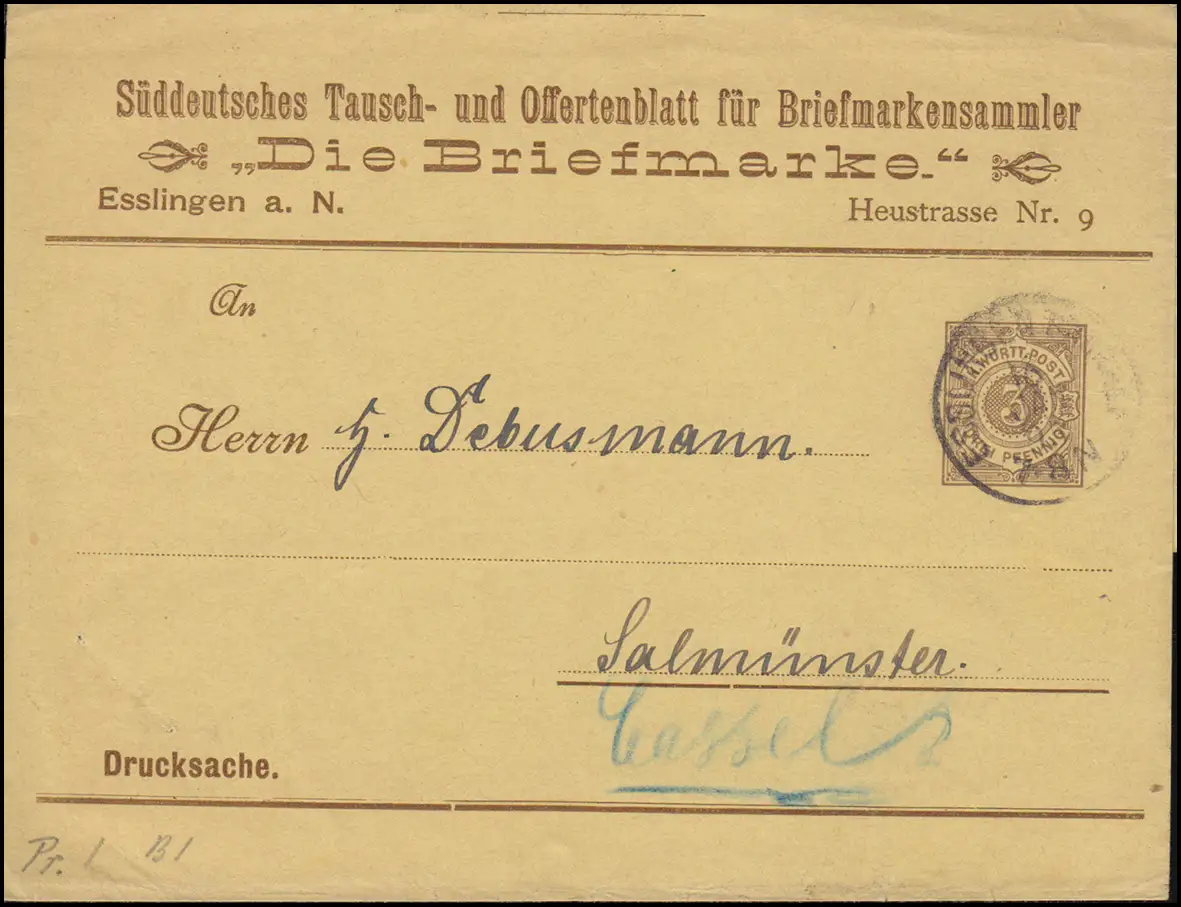 par Salmünster, expéditeur: Süddeutsche- und Offertenblatt für Timbresammler LA BRIEFMARKE Esslingen N° de catalogue: PS2 Examen: original Référence produit: 00000000019691