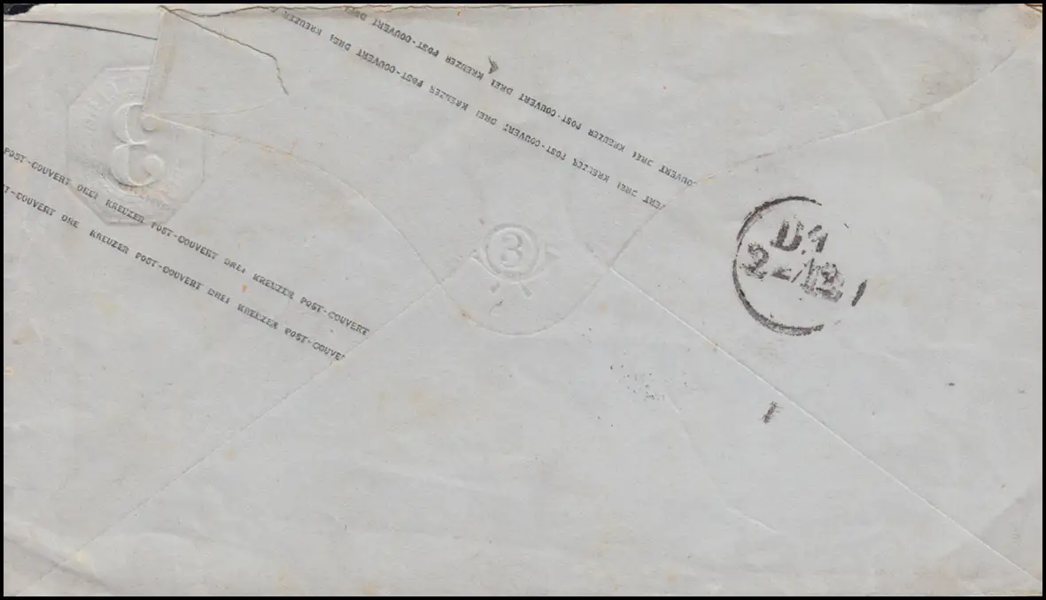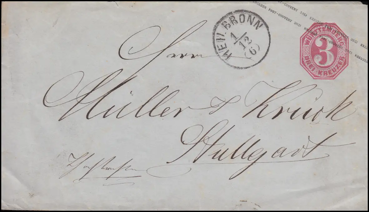 Wurtemberg - couverture U 20 de HEILBRRONN 1.12. vers STUTTGART 2.12.