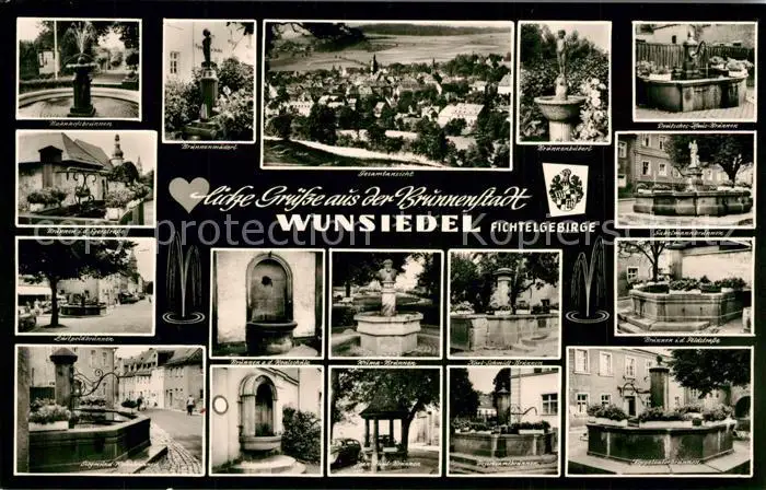 Wunsiedel Panorama Stadt der vielen Brunnen Details Wunsiedel postalisch nicht gelaufen 1921-1965 Erhaltung siehe scans [WerneD78] WernPID7