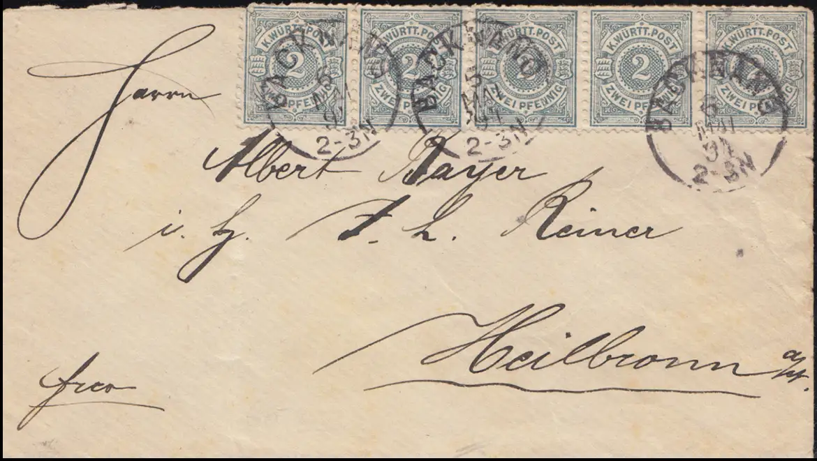 Wurtemberg 60 paragraphe 2 p. paire + 3 comme MeF sur lettre BAKKNANG 6.5.1894