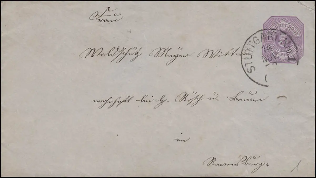 Wurtemberg - Envoi 5 p. STUTTGART 14.11. (778?) vers RAVENSBURG 14.11