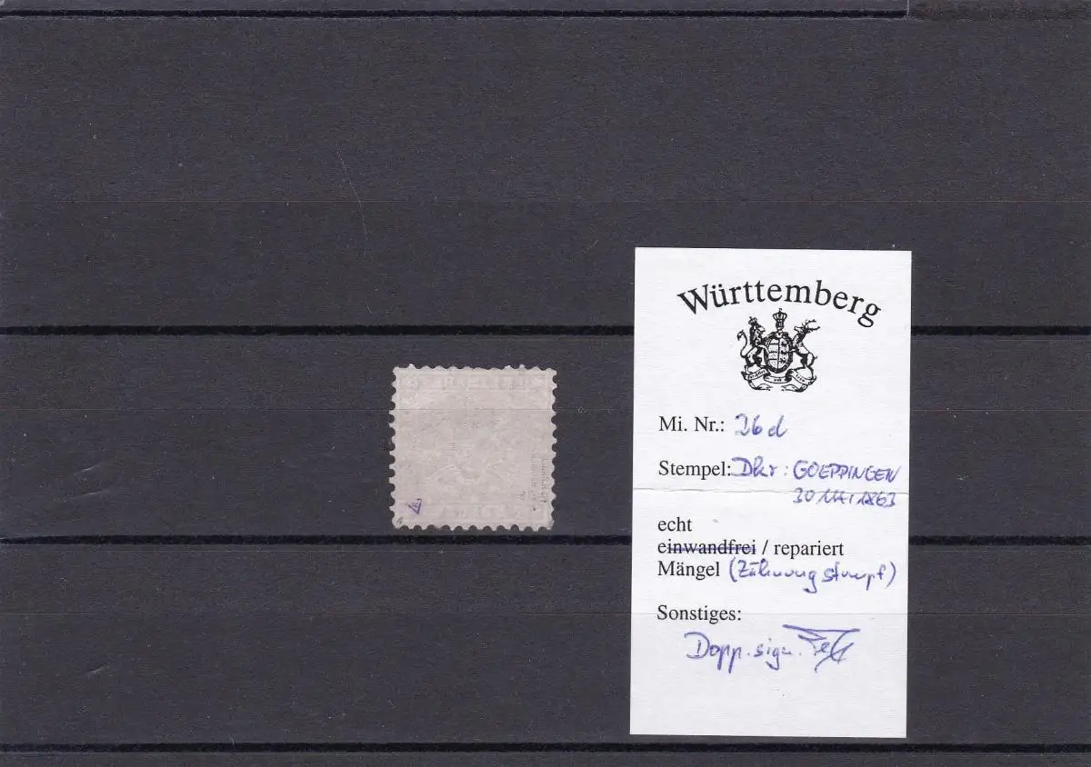 Wurtemberg: MiNr. 26d, BPP Signature, cacheté