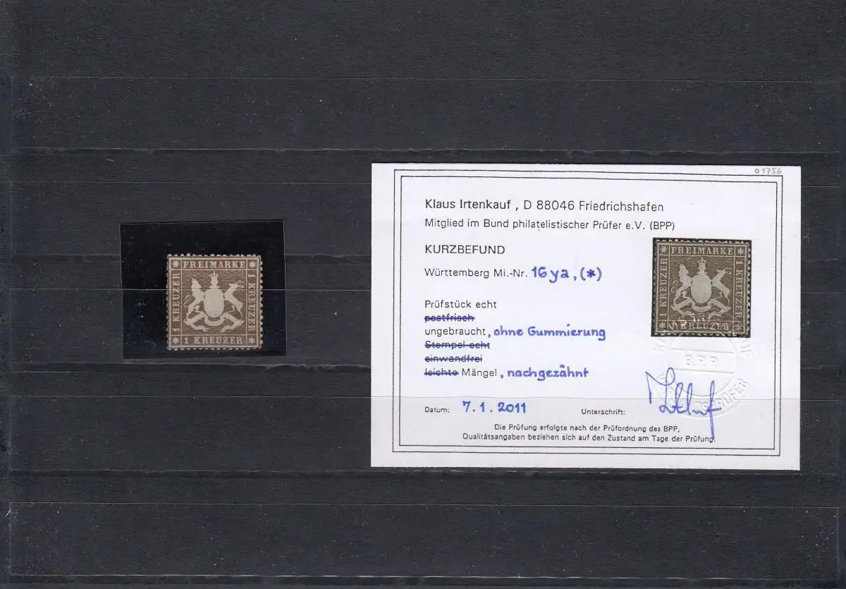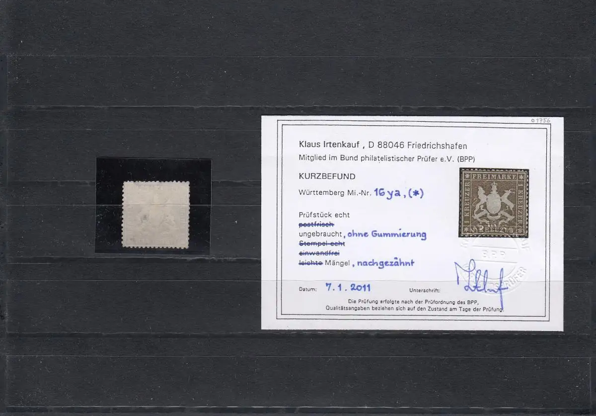 Wurtemberg: Min° 16ya, sans caoutchouc, résultat BPP