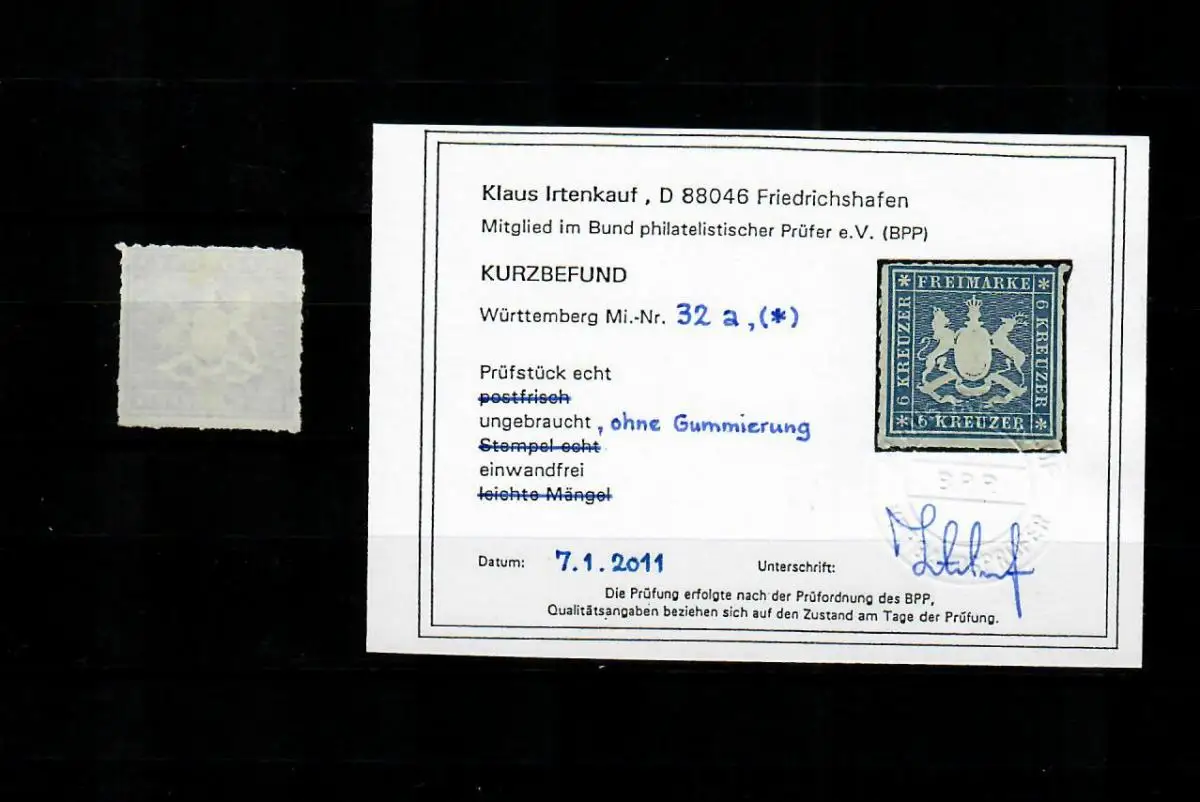 Wurtemberg: Min° 32a, sans caoutchouc, résultat BPP