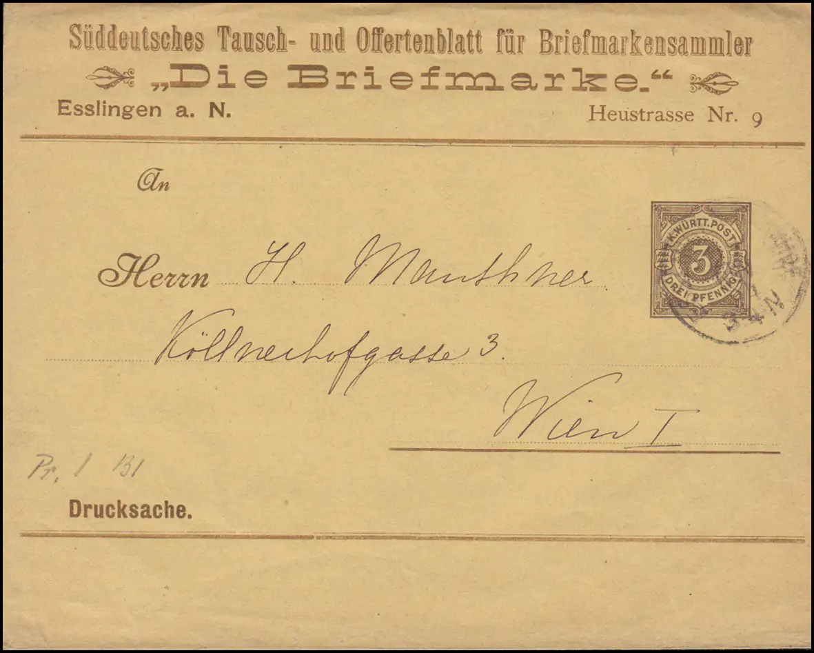 Vers Vienne 29.11.94, expéditeur: Süddeutsche- und Offertenblatt für Timbresammler LA BRIEFMARKE Esslingen N° de catalogue: PS2 Examen: original Référence produit: 0000000002388>P>Remarque: Cet article n'est disponible qu'une seule fois. Vous recevrez exactement l'article représenté.