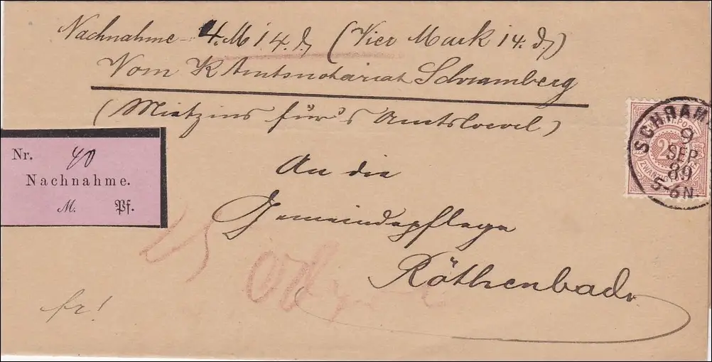 Wurtemberg: lettre de rachat de Schramberg à Röthenbach 1889