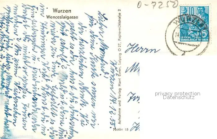 Wurzen_Sachsen Wenceslaigasse Wurzen Sachsen postalisch gelaufen 1955 Erhaltung siehe scans [KathaD81] Kathoren