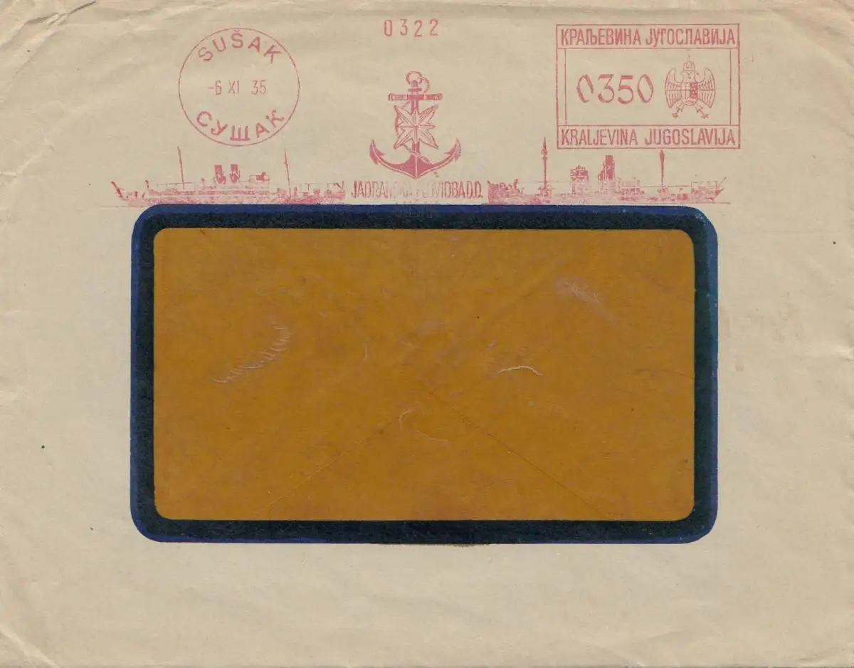 Yougoslaves: cachet libre Susak 1935 - Ancre marine