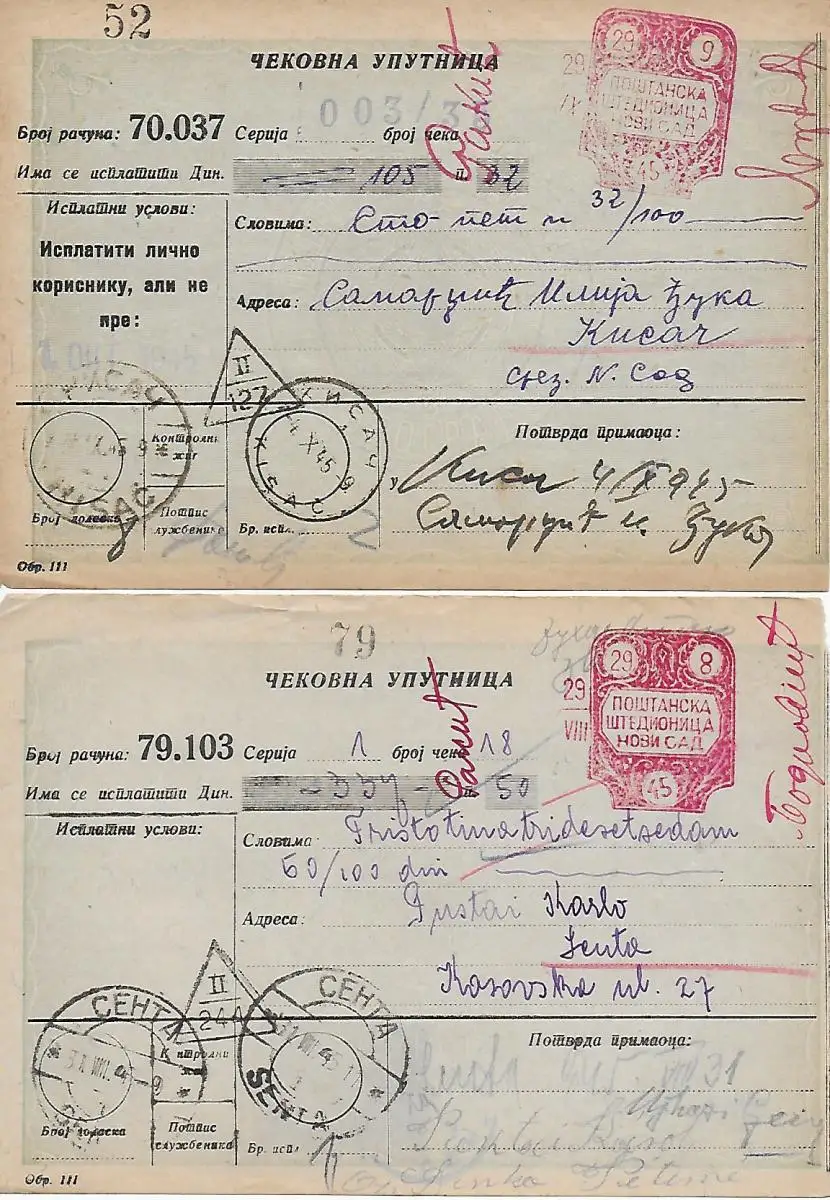 Yougoslavie 1945: face arrière numéro 84, 60 pièces justificatives