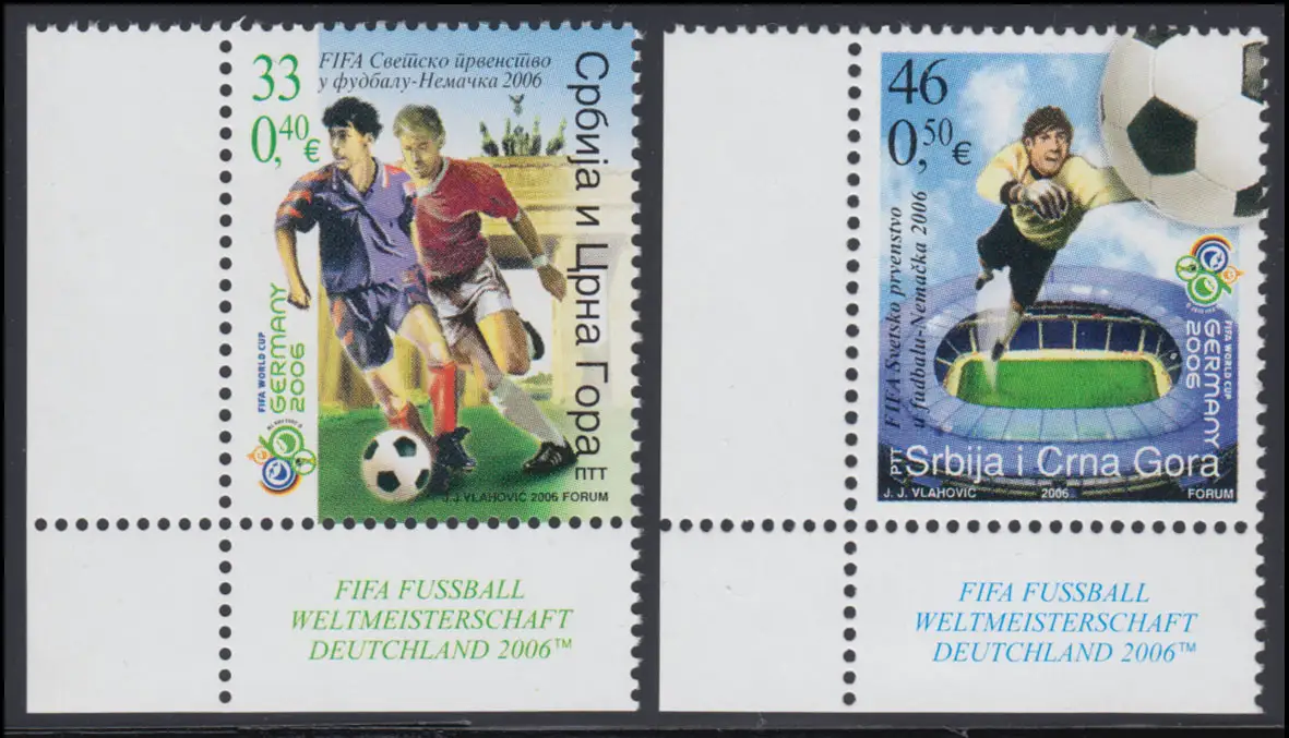 Yougoslavie 3325-3326 Coupe du Monde Allemagne 2006, 2 valeurs, coin ensemble et l. **
