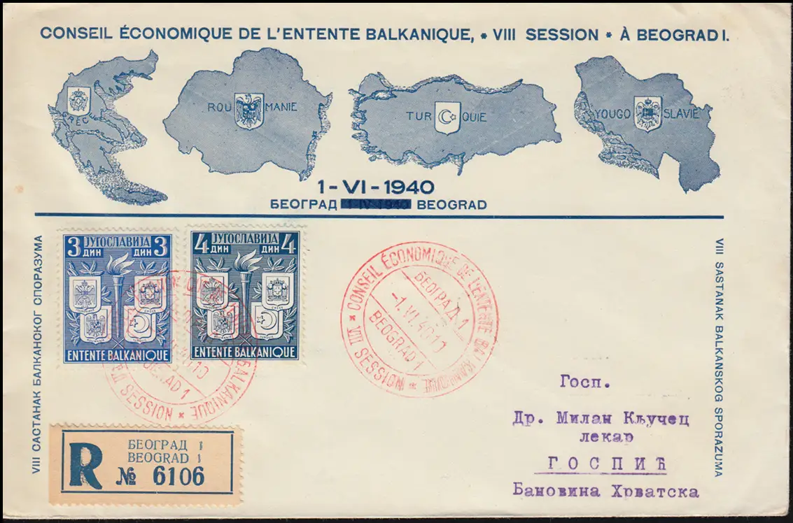 Yougoslavie 423+425 Fédération des Balkans sur le PDD rouge de bijoux ESSt BEOGRAD 1.6.40