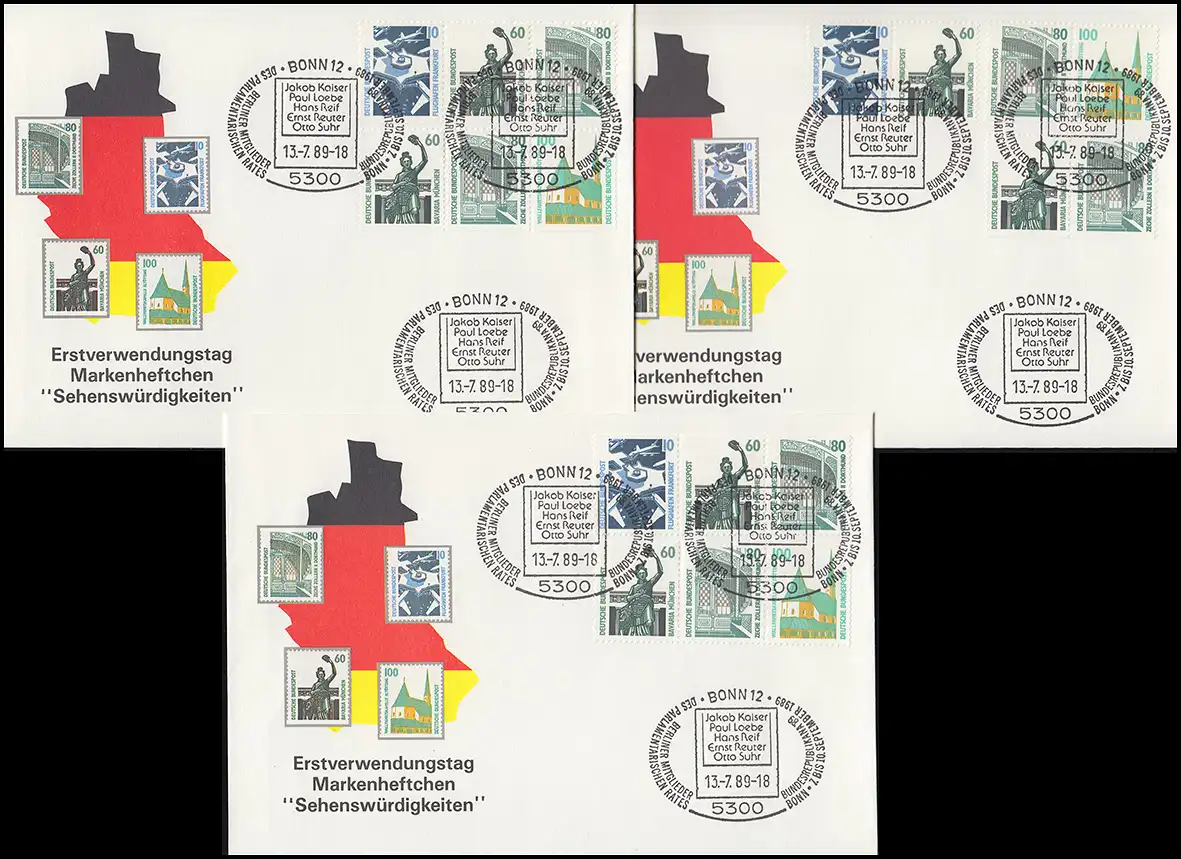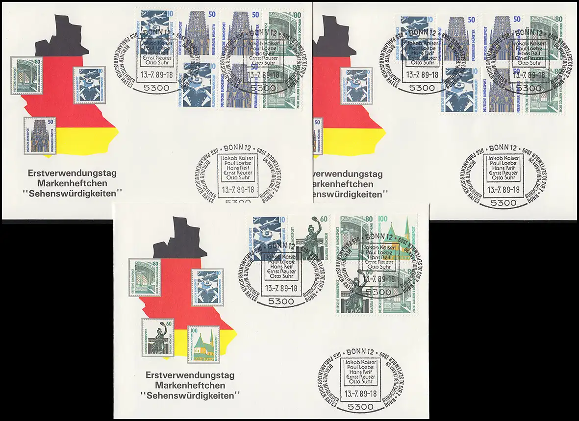 Kit ZD en MH 25-26 SWK 16 Impressions combinées W79-W94 kpl. sur 6 bijoux FDC 13.7.89