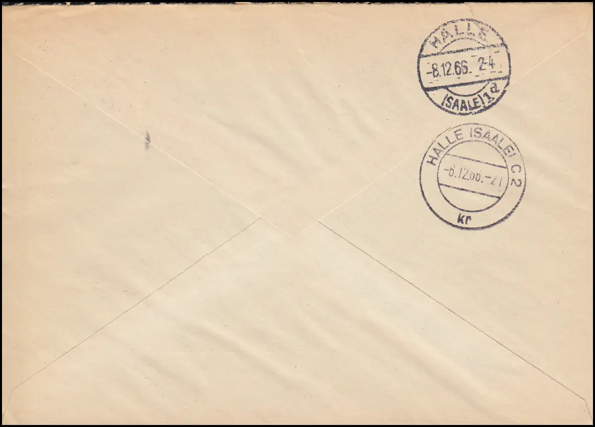 Lettre de ZKD HO-Kreisgesellschaft HETTSTEDT / SÜDHARZ 6.12.1966 vers HALLE / SAALE 6/12/