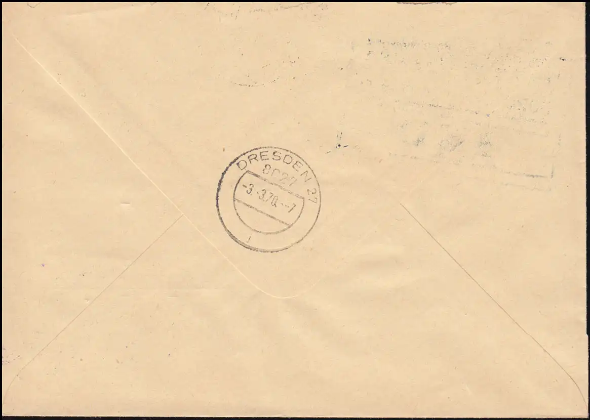 comme lettre de ville DRESDE 27 - 3.3.70, Tampon d'entrée Université technique de Dresde 3.3,1970 Examen: original Référence produit: 00000000040109