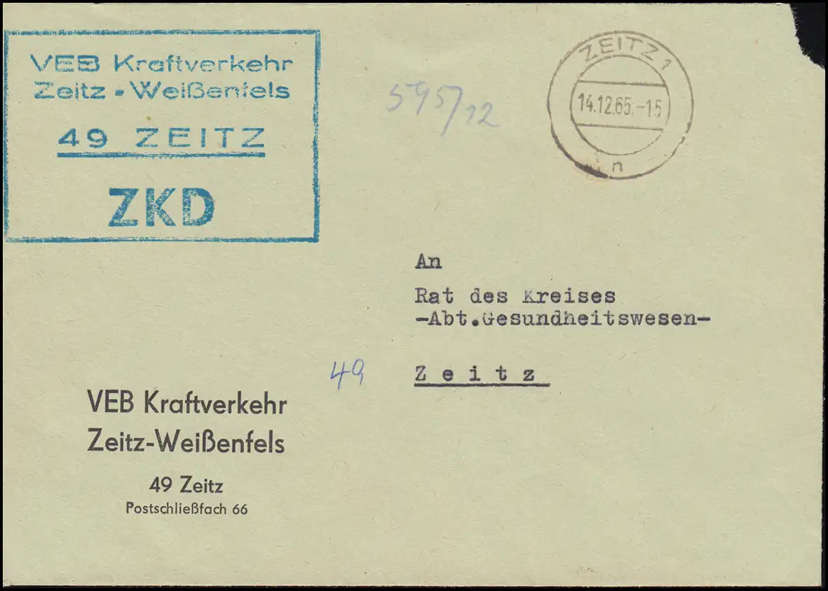 avec cachet d'entrée au "Conseil du Cercle Zeitz le 15.12.1965" Vérification: original Référence produit: 00000000024791