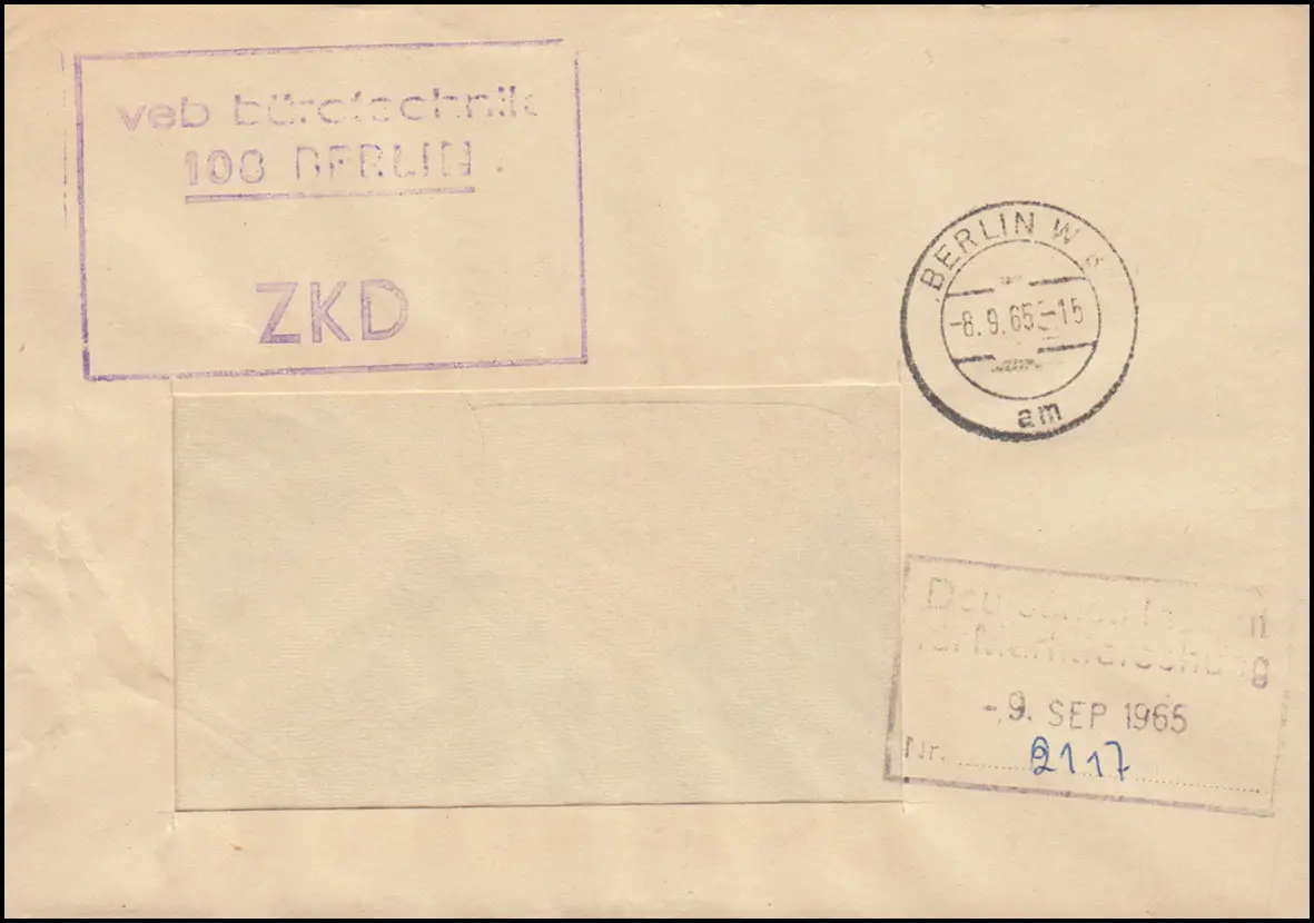Lettre de la ZKD VEB Bureautechnik BERLIN 8.9.65 à l'Institut allemand d'études de marché