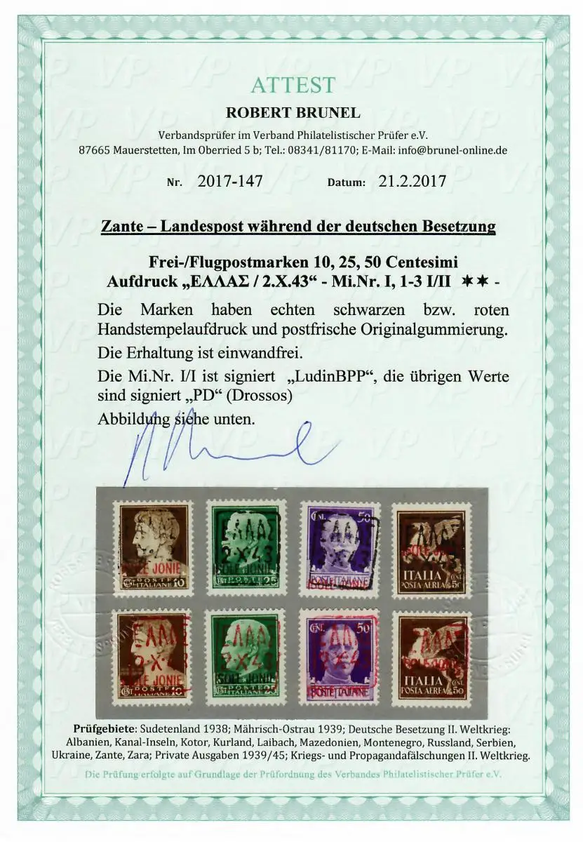 Zante MiNr. I, 1-3 I/II, frais, **, N° I / I avec signature BPP